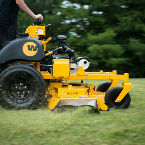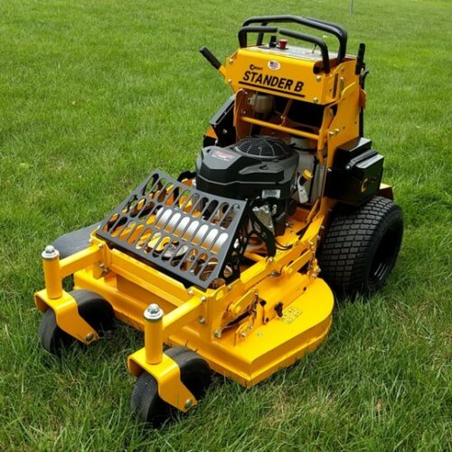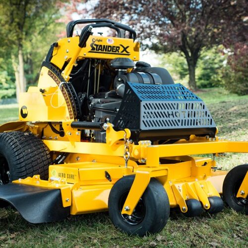 Small amounts of time are saved getting on and off the mower to more obstacles, open gates when loading and unloading. A few minutes saved per job adds up over the day and week leaving more time to fit in extra jobs. Compared to a push mower, a stand on mower is much faster over the ground. Full commercial stand on mowers often have a faster ground speed than equivalent specification sit on zero turn mowers.